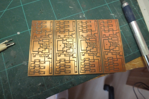 Das Lauflicht ist seit eh und je einer der beleibtesten und flexibel einsetzbarsten Bausätze. Da unsere Kinder, nach bestandenem Löterpass, sich gern an diesem Bausatz versuchen und er für diverse Vereinsspiele und Werbeständer zum Einsatz kommt lag es nahe auch diese Platine mit der Fräse herzustellen. Dazu wurde die Fräs- und Bohrdatei ertsellt, die in einem Fräsvorgang jeweils 4 Platinen herstellt.