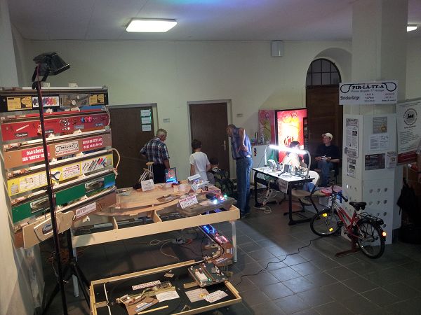 Gemeinsam mit 8 fleißigen Helfern präsentierten wir insgesamt 15 Meter unserer PIR-LÄ-TT-A um damit unser Ganztagsangebot Technikwerkstatt für Kinder vorzustellen. Alexander demonstrierte für alle Neugierigen die Fertigung einer Schaltung auf einer Platine.