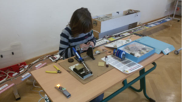 Außerdem hatten die Messebesucher die Möglichkeit an 2 Löterplätzen unseren SUPERFLASHER auf Leiterplatten zu montieren.