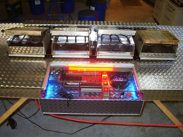 Was gehört zu einer ordentlichen Vereinsfeier? Natürlich gute Musik und ordentlich was zu Essen! So entstand aus 2 alten Ghettoblastern von 1992, 4 DDR-Elektrogrills von 1981, einem MP3 Player und einer Hand voll Elektrokleinteile aus der Restekiste dieser transportable "Musikgrill"
